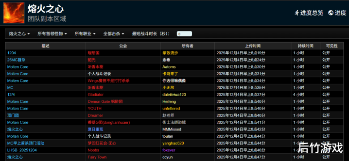 维护提前结束,《魔兽世界》“泰坦重铸”时光服首个团本MC(熔火之心)于12月4日上午7点多开放。跟普遍预测一致,时光服重做的MC(80级25人团本)难度极低,低于巫妖王时代的NAXX,几乎等于正式服的“时光漫游”,未来有发展成“眼神团”(不开YY)的趋势。在开服的不到一个小时内,多团已通关,其中一区部落公会拿下首通,领先第二名仅5分钟。